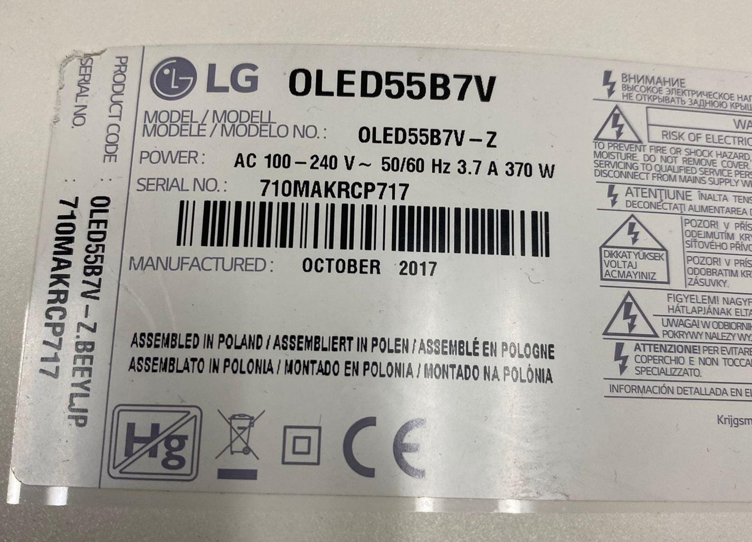 SCHEDA SMONTATA DA TV LG OLED 55B7V CON LCD ROTTO